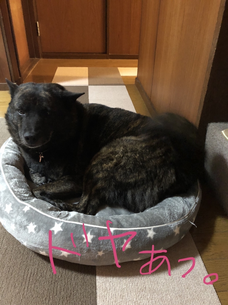 デッカ目の甲斐犬なので、わんわんベッドがキッツキツですが、高速フリフリシッポであったかい幸せを満喫中〜❤︎