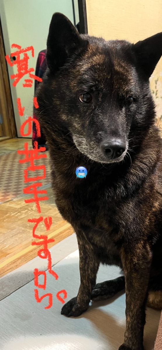 2025-01-15 ながら族 サン。 こんばんは、あまりの寒さに首も引っ込む姉風飼い主ネェネと、いかに寒かろうと自前の毛皮のみで乗り切る気合いの甲斐犬サンのブログへようこそ。いやぁホント寒くなりました。 関西は明日、明後日と更に寒くなるらしい。先日、オットとサンがお留守番している間に、ネェネが外出先から戻ってきたところ。門扉が開いた途端、ストーブの前で寝転びながら首だけもたげて吠えたサンベェ……さすか、『寝ながら族 サン』。 あぁ、そうか。あまりの寒さに活動量もエコになりますね😅。ふふふふふ。 にほんブログ村